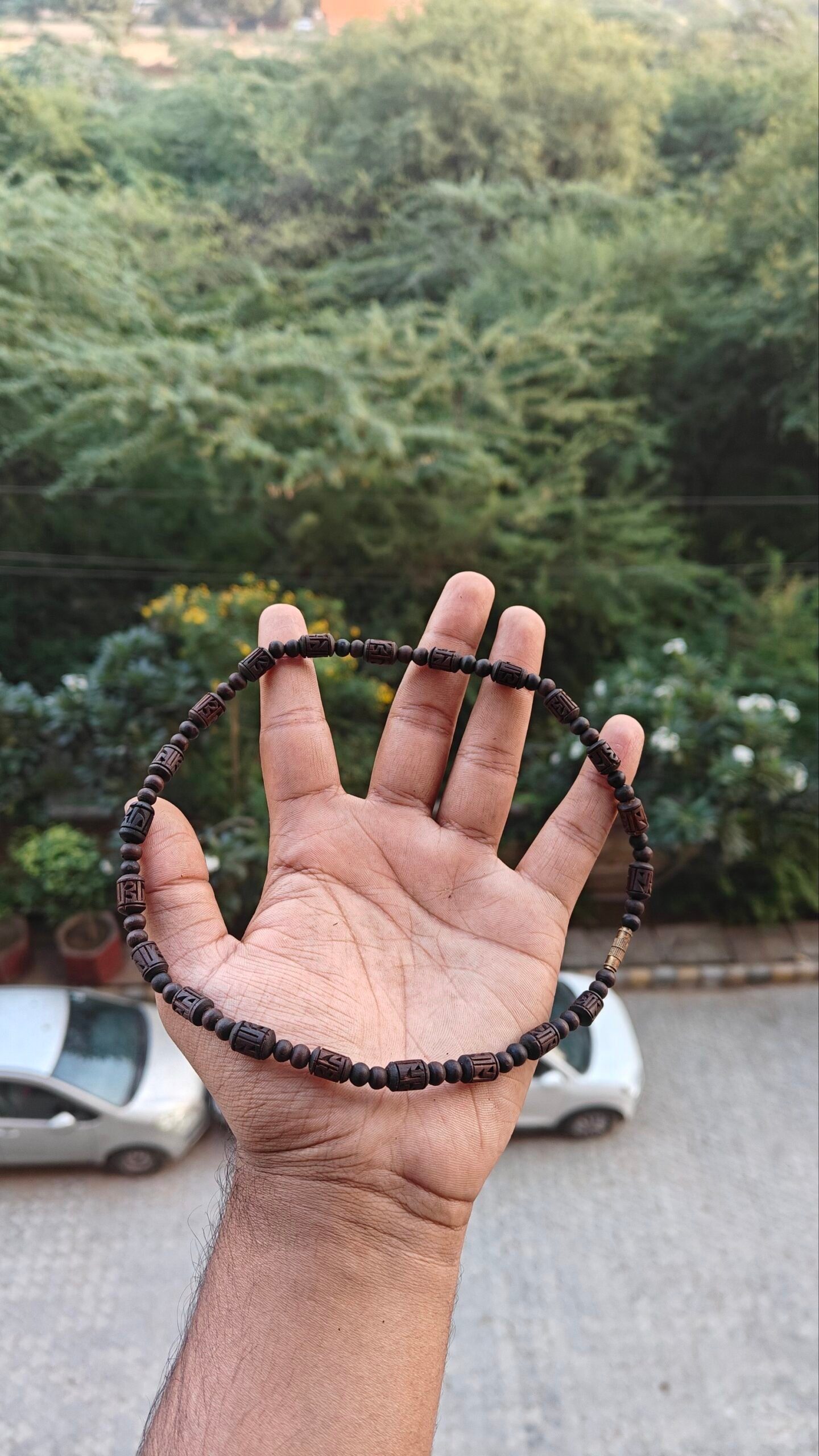 Each bead is carved from original Tulsi wood, known for its powerful spiritual vibrations and its ability to purify the mind, body, and soul. The process involves heating and polishing the Tulsi beads in ghee, which enhances their durability and gives them a smooth, natural finish that deepens with time.