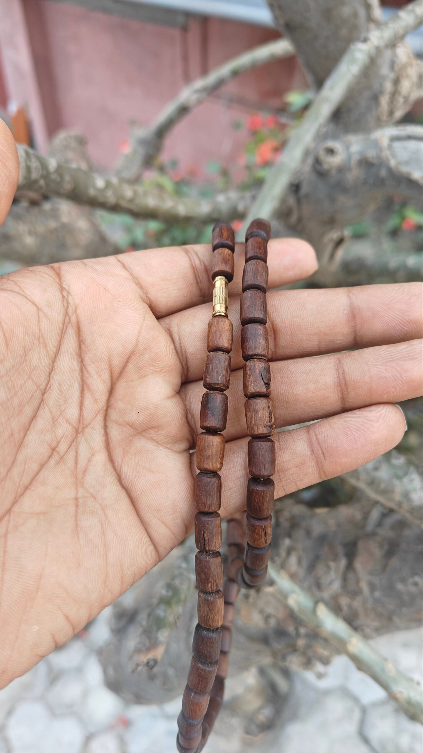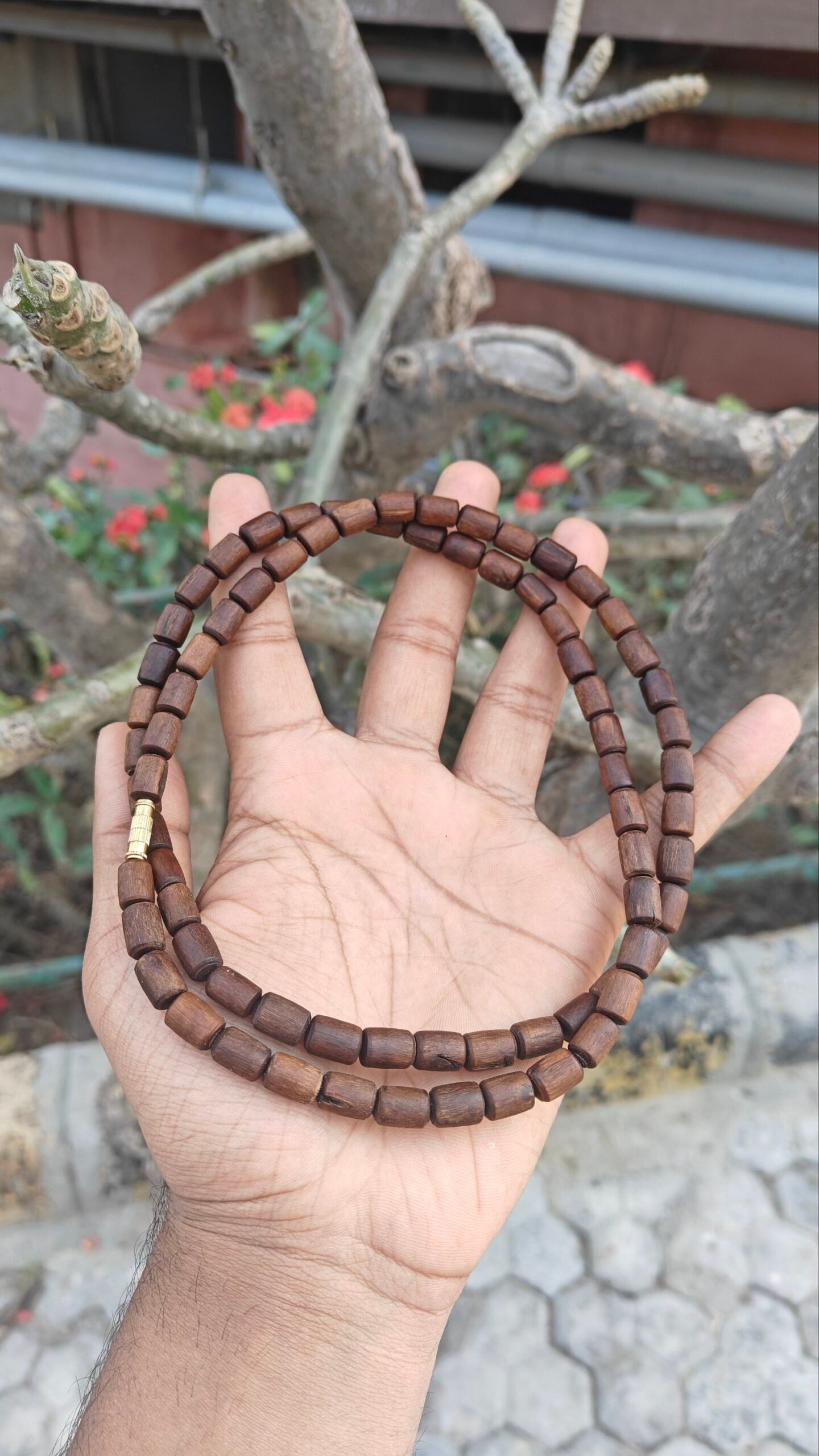 Each bead is carved from original Tulsi wood, known for its powerful spiritual vibrations and its ability to purify the mind, body, and soul. The process involves heating and polishing the Tulsi beads in ghee, which enhances their durability and gives them a smooth, natural finish that deepens with time.