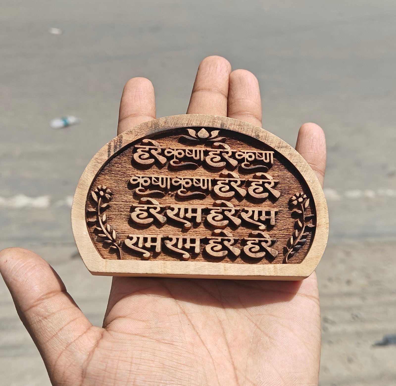 Elevate your spiritual practice with this beautifully handcrafted Naam Seva plaque, engraved with the sacred Hare Krishna Mahamantra on naturally sourced Kadamb wood — a tree deeply associated with Lord Krishna’s divine pastimes in Vrindavan.