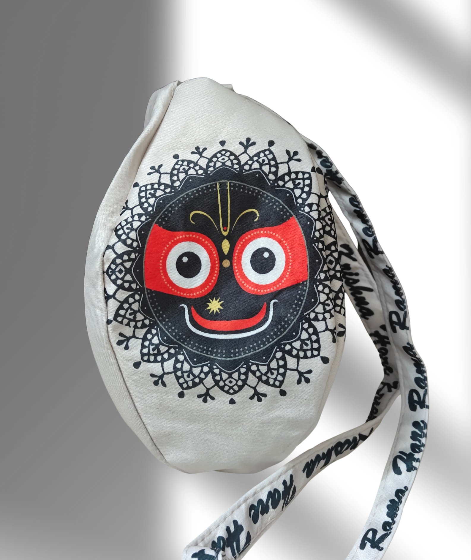 Jagannath Ji beige multi printed japa bag