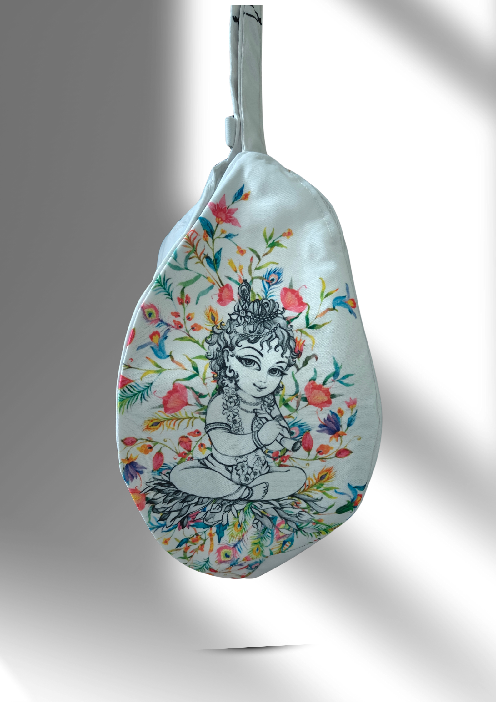 Enhance your japa or pooja rituals with this spiritually themed Little Kanha bead bag. It’s a small yet divine addition to your sacred space.