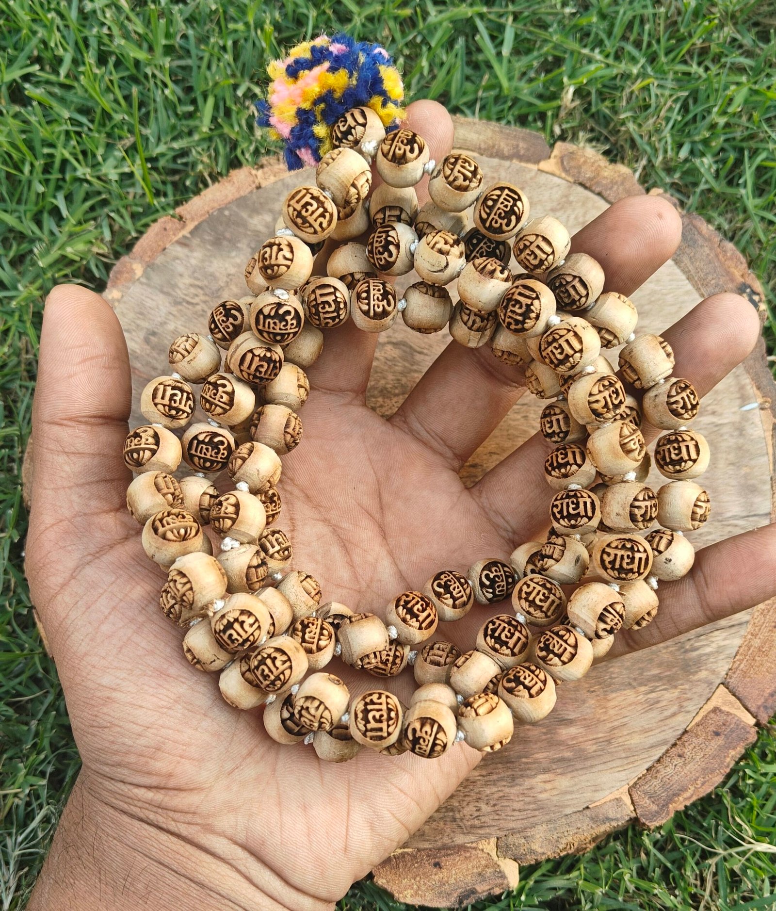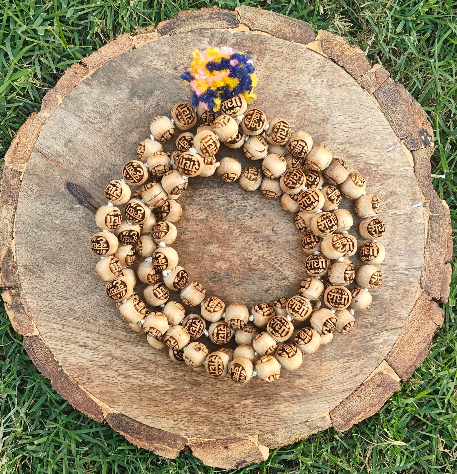 Made from the sacred Tulsi wood of Vrindavan, this Japmala is specially designed for devotees of Shri Radha Krishna. Each bead carries divine vibrations, helping in chanting the holy names with purity and focus.