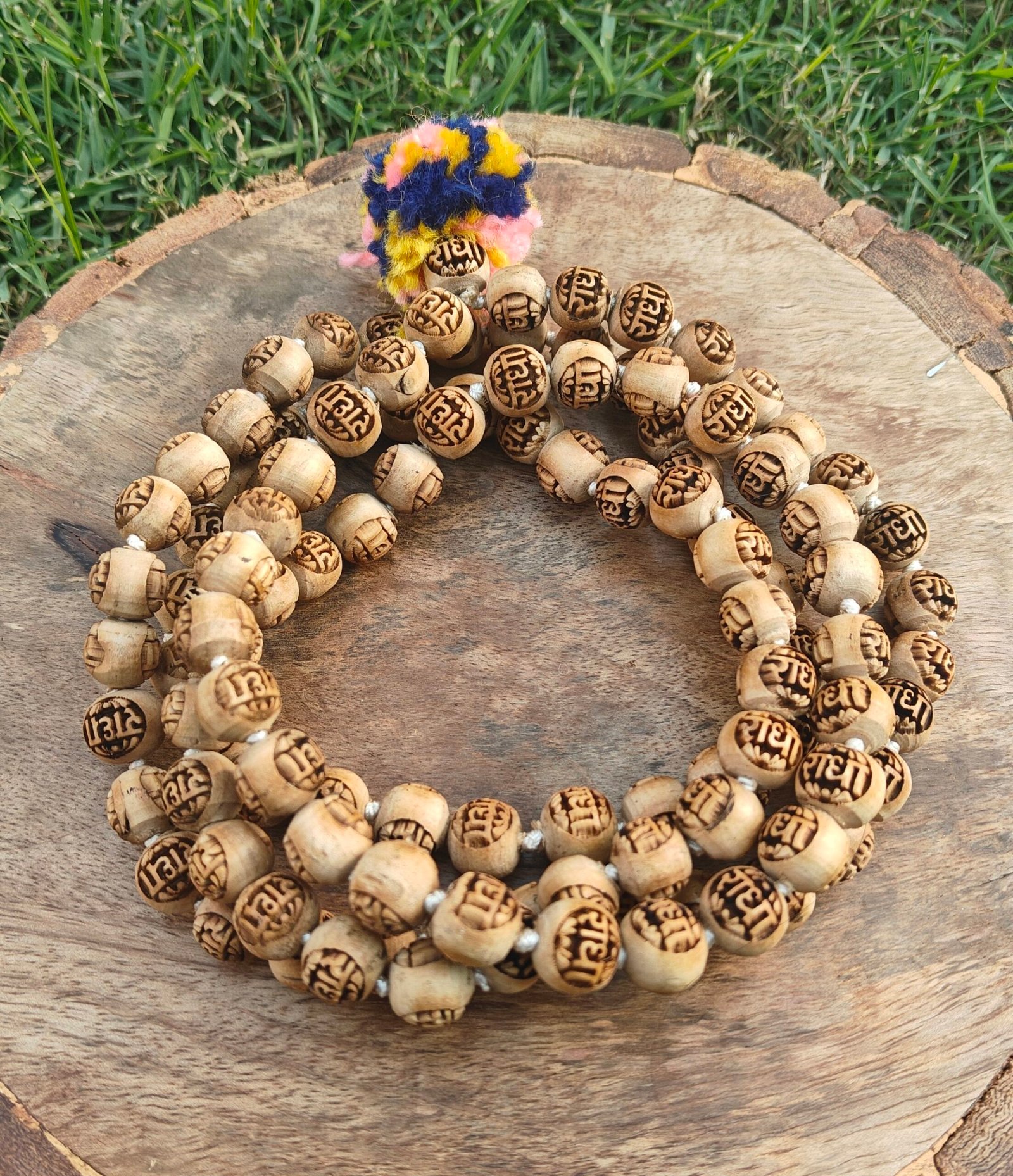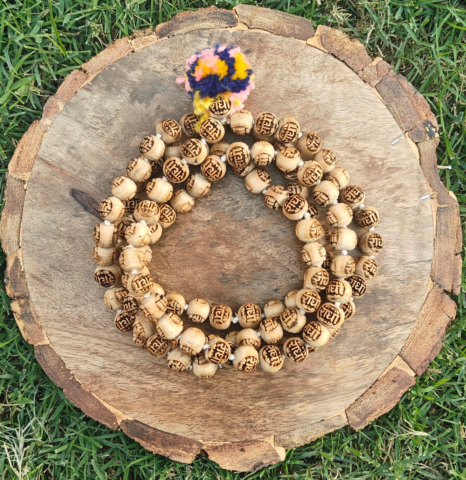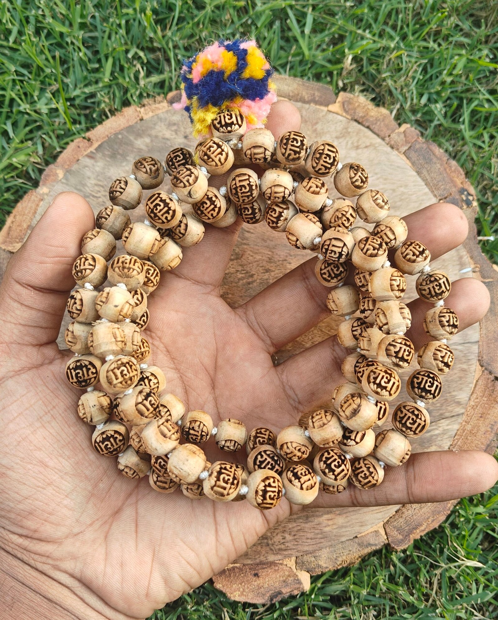 Crafted from the sacred Vrindavan Tulsi, each bead of this japmala is beautifully engraved with the divine name “Shri Radha”. Chanting on this mala connects the soul with Shri Radha Rani’s eternal prema-bhakti, bringing peace, love, and spiritual upliftment.