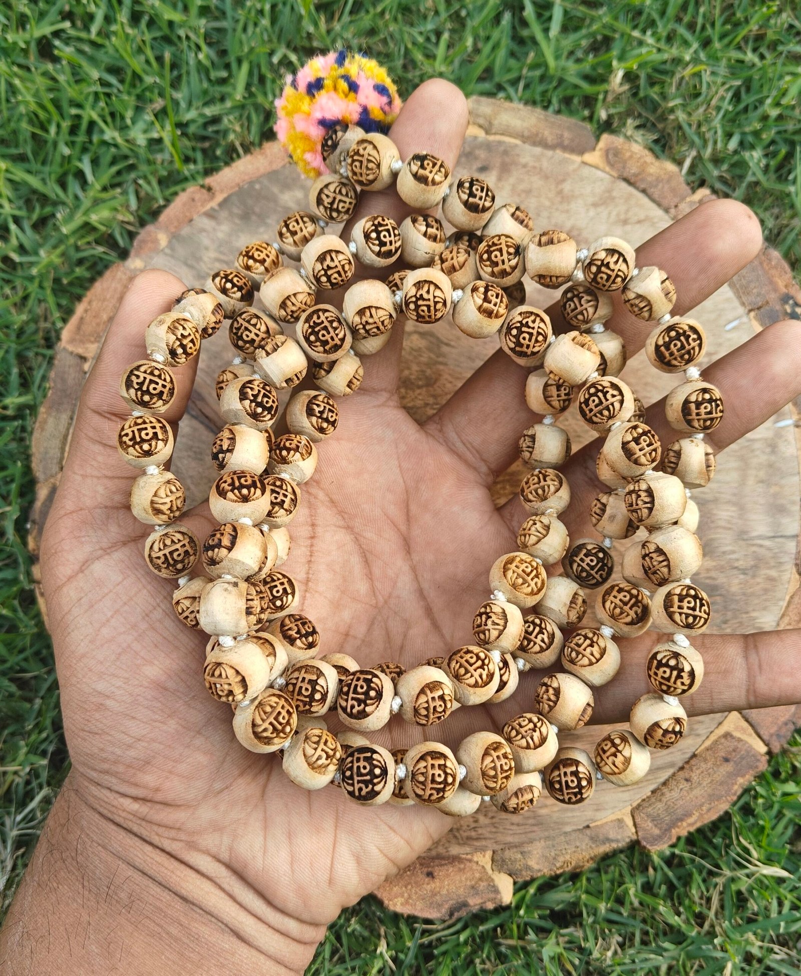 Sacred Tulsi beads, each engraved with the divine name “Shri Ram”, make this japmala truly special. Chanting on this mala connects the devotee with the eternal maryada purushottam Shri Ramchandra Ji and fills the heart with peace, devotion, and protection.