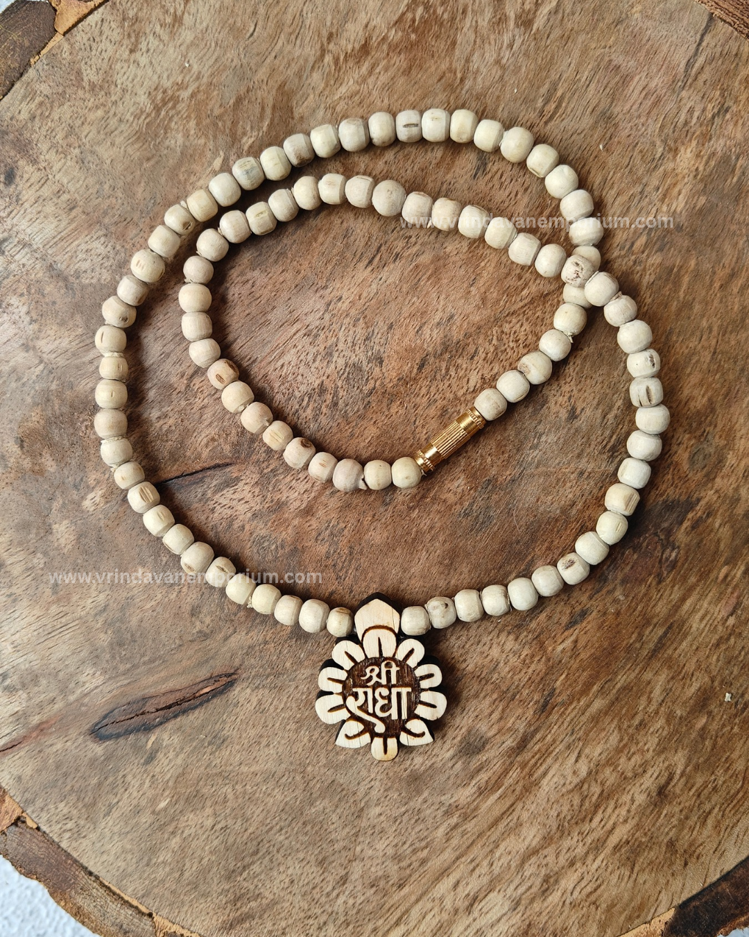 This mala serves as a constant reminder of Radha Rani’s unconditional love and devotion. The intricately designed flower-shaped locket represents purity, love, and spiritual awakening. It symbolizes the eternal connection between the soul and the divine, guiding you toward peace and enlightenment.