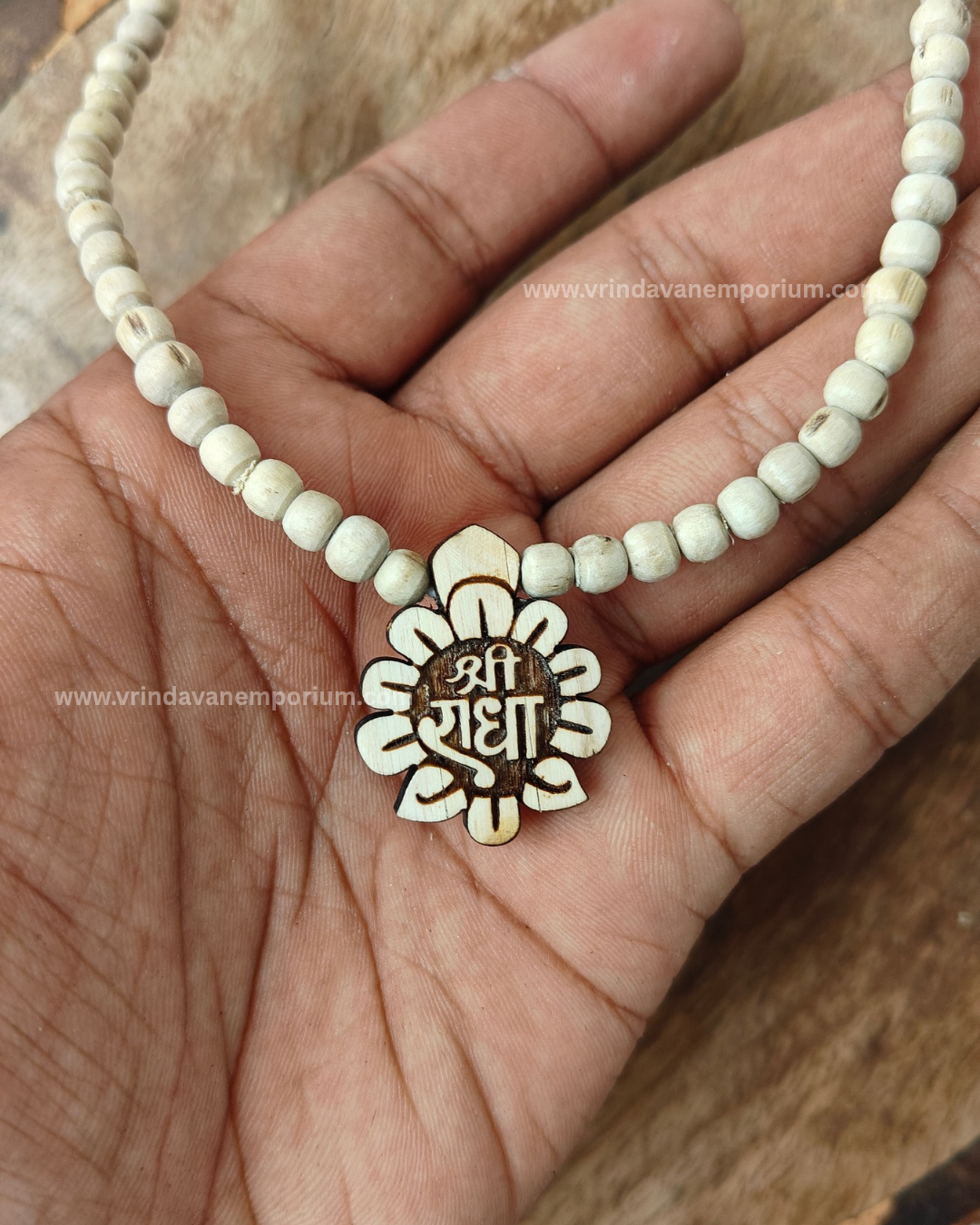 The Shree Radha Flower Tulsi Locket Mala is a sacred symbol of faith, devotion, and divine protection. Crafted from pure Tulsi beads, this mala carries spiritual significance and is highly revered among devotees and seekers of divine grace. The flower-shaped Radha locket adds an artistic and symbolic touch, making it a perfect blend of spirituality and elegance.