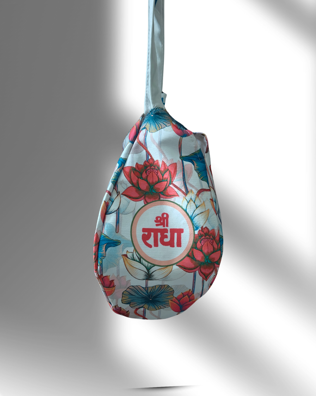 Experience devotion with elegance through our Shree Radha Floral Bead Bag, crafted in premium quality fabric for daily spiritual practice. Designed specially for japa and naam-smaran, this bead bag features a beautiful floral design and an attached Hare Krishna Mahamantra strip, keeping your mind focused on bhakti while chanting.