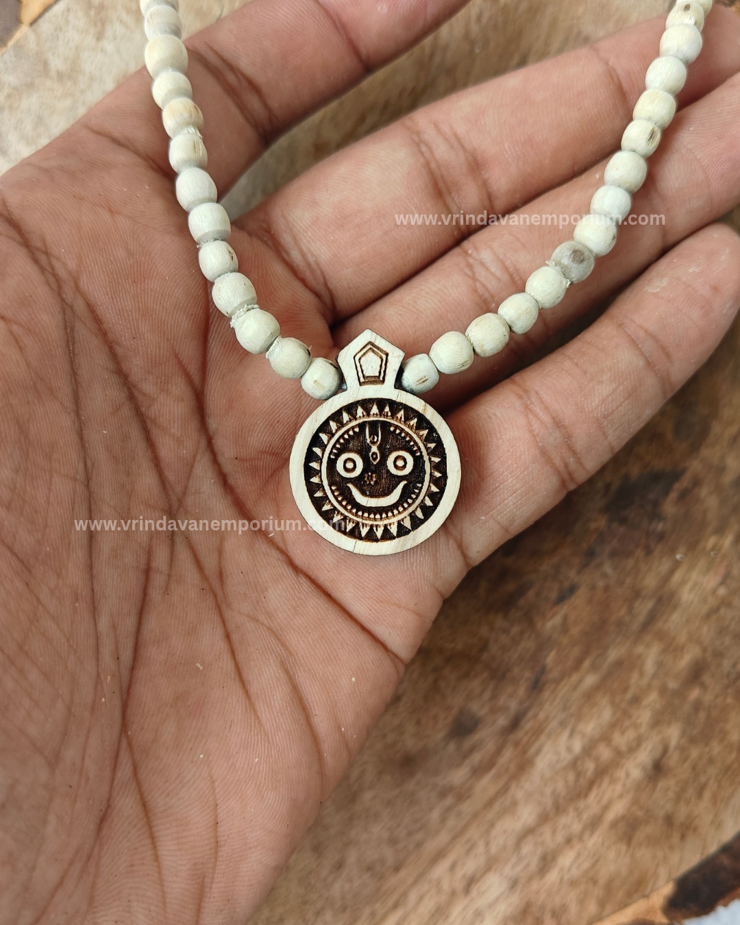 The Shri Jagannath Ji Tulsi Locket Mala embodies deep devotion and divine protection. Crafted from sacred Tulsi wood, this mala strengthens spiritual connections, purifies the mind, and attracts positive energy. The beautifully engraved Jagannath Ji locket serves as a constant reminder of Lord Jagannath’s divine grace, offering peace and blessings to the wearer.