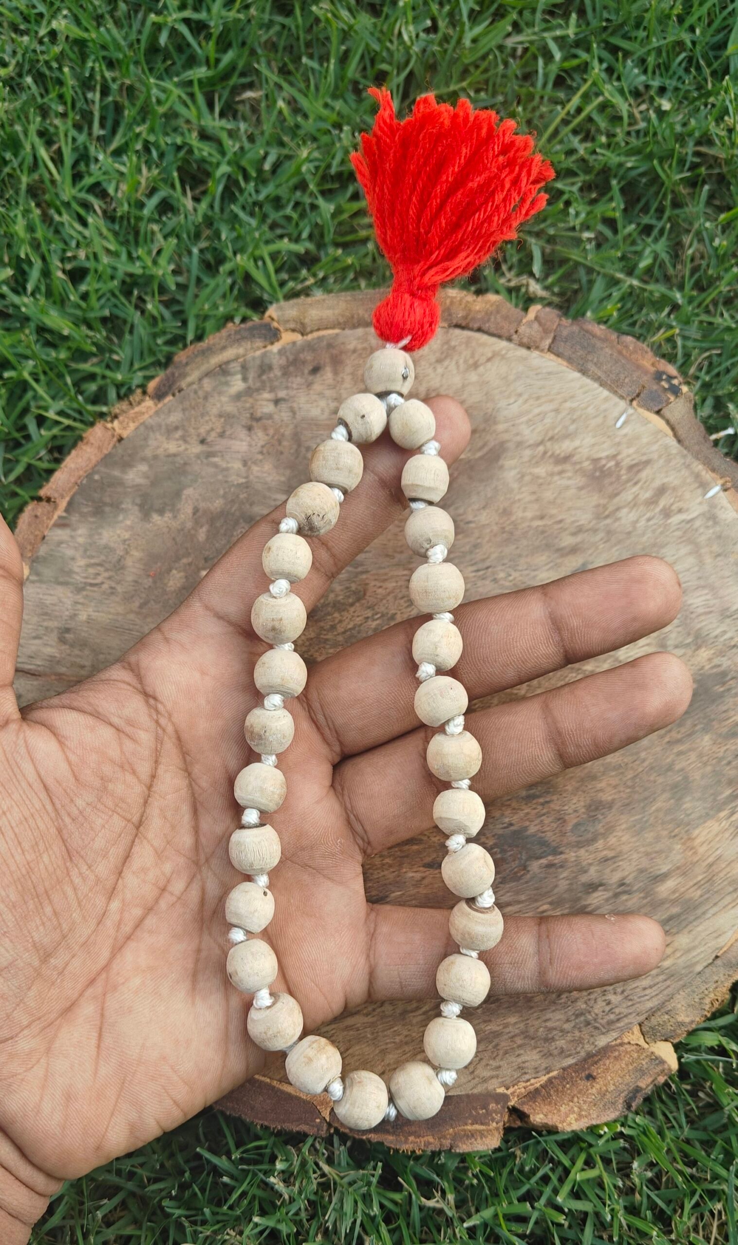 The 27+1 bead design helps maintain focus during japa and meditation. The additional guru bead symbolizes divine wisdom and guidance, strengthening the spiritual connection. With its smooth texture and natural fragrance, this mala provides a calming experience, making it a must-have for devotees, saints, and meditation practitioners.