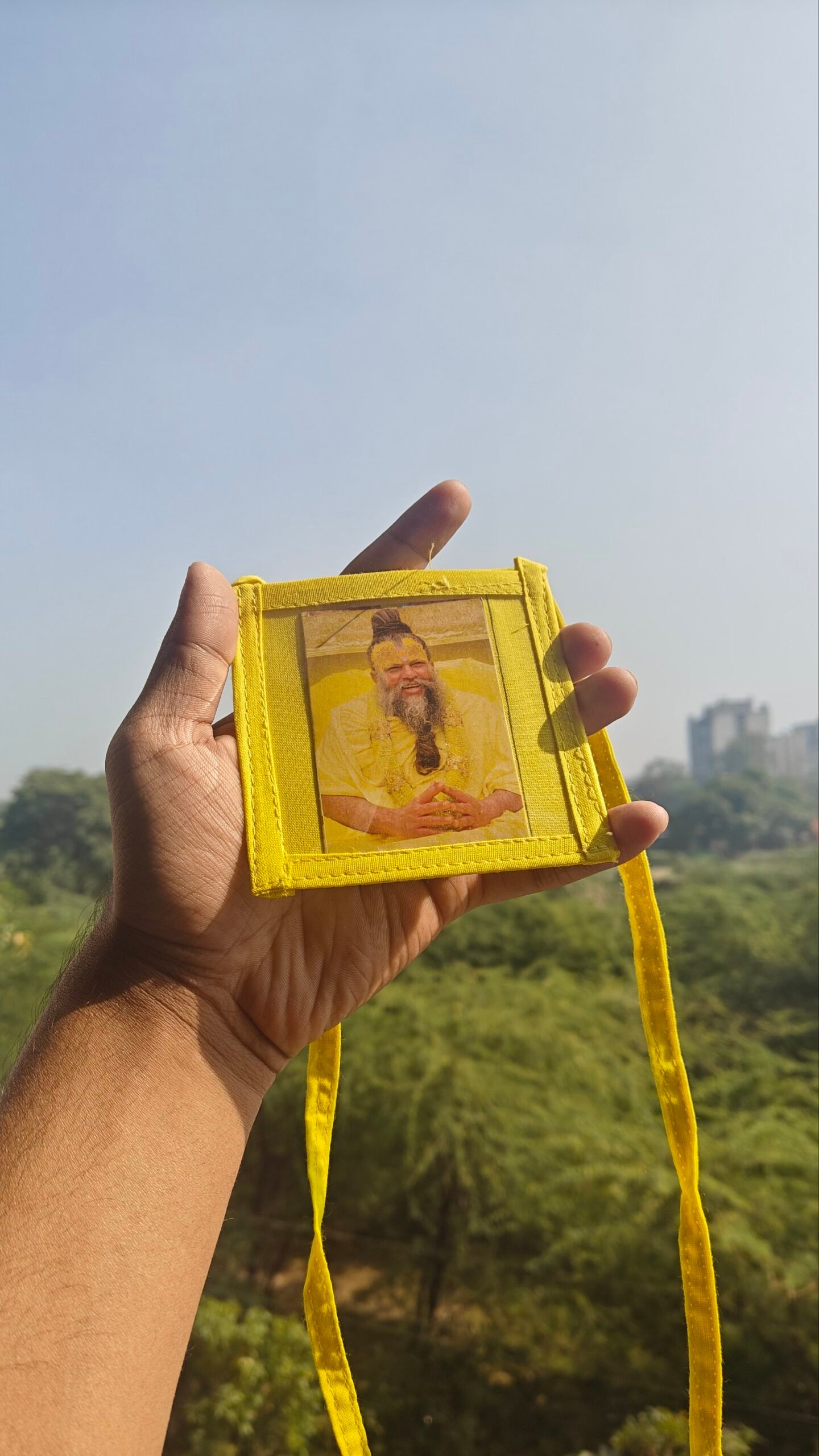 Japa Bags, Naam SevaYellow hanging jholi with chain- Double side photo
